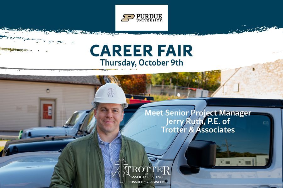 Meet Scott Trotter, P.E. BCEE, President of Trotter and Associates, Inc., and Purdue alum Jerry Ruth, P.E., Senior Project Manager, at the CESAC Career Fair on Thursday, October 9th, from 9 am -3 pm. Learn more about TAI’s growing firm and how you can launch your career! Learn more at trotter-inc.com/careers.