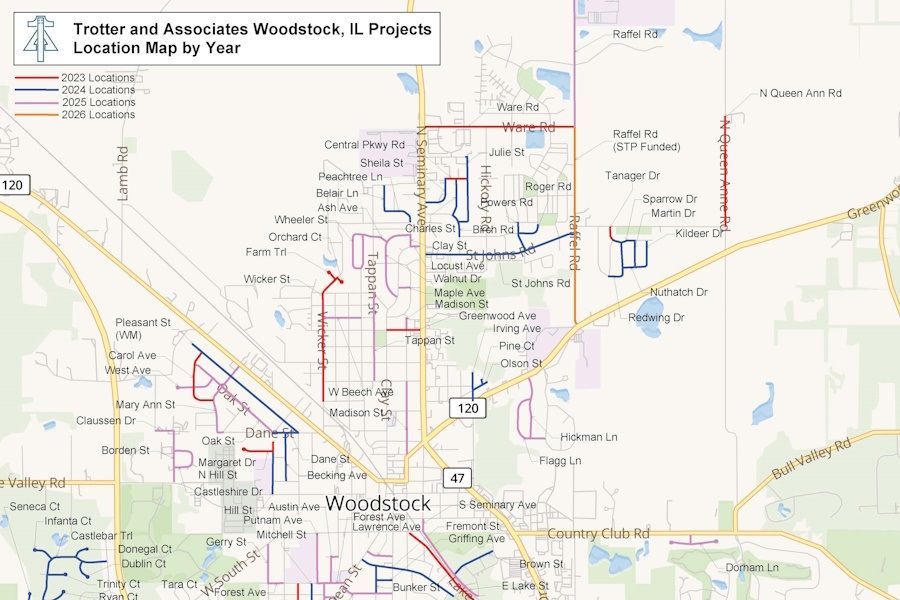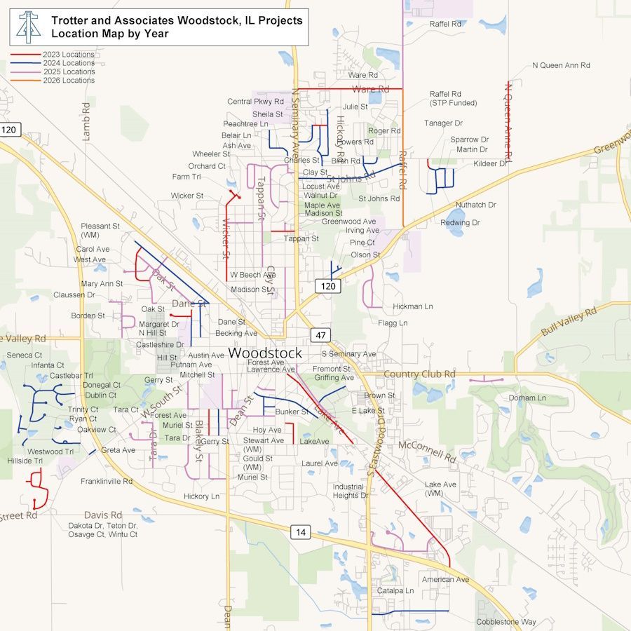 The Trotter and Associates team is currently working closely with the City of Woodstock to determine the scope and streets for the 2026 Street Program. This project will entail road resurfacing and reconstruction, along with sewer repairs, on local roads.